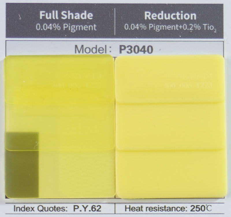 潤(rùn)巴Ranbar Yellow P3040是一款經(jīng)濟(jì)通用型的半透明綠光黃色單偶氮色淀類有機(jī)顏料,顏色索引號(hào)為顏料黃62,色澤鮮艷,流動(dòng)性好,易分散,具有良好的耐曬性、耐熱性、耐酸堿性、耐溶劑性和耐遷移性等色牢度特性,著色力相對(duì)稍低,它在HDPE高密度聚乙烯和其他部分結(jié)晶聚合物中表現(xiàn)出較大的收縮翹曲性,在塑料PVC中具有良好的耐增塑劑性和耐滲色性,該顏料不含重金屬和鹵素,可用于替代二芳基和鉻酸鉛類顏料。