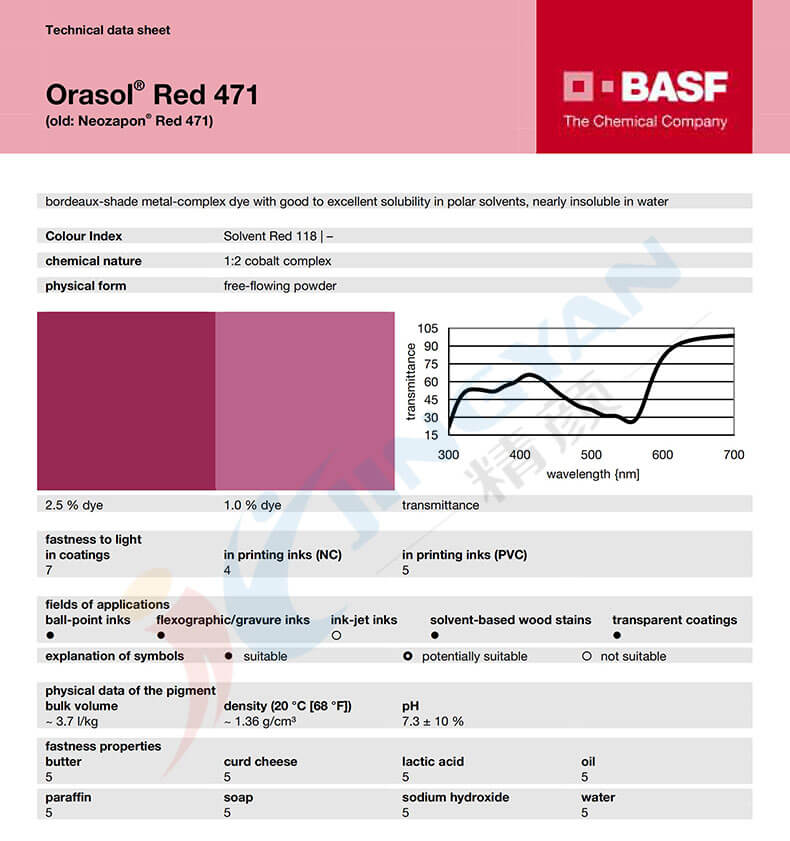 馬上撥打電話 400 006 1223 咨詢:巴斯夫BASF Orasol Red 471棗紅色鈷金屬絡(luò)合染料溶劑紅118相關(guān)信息
