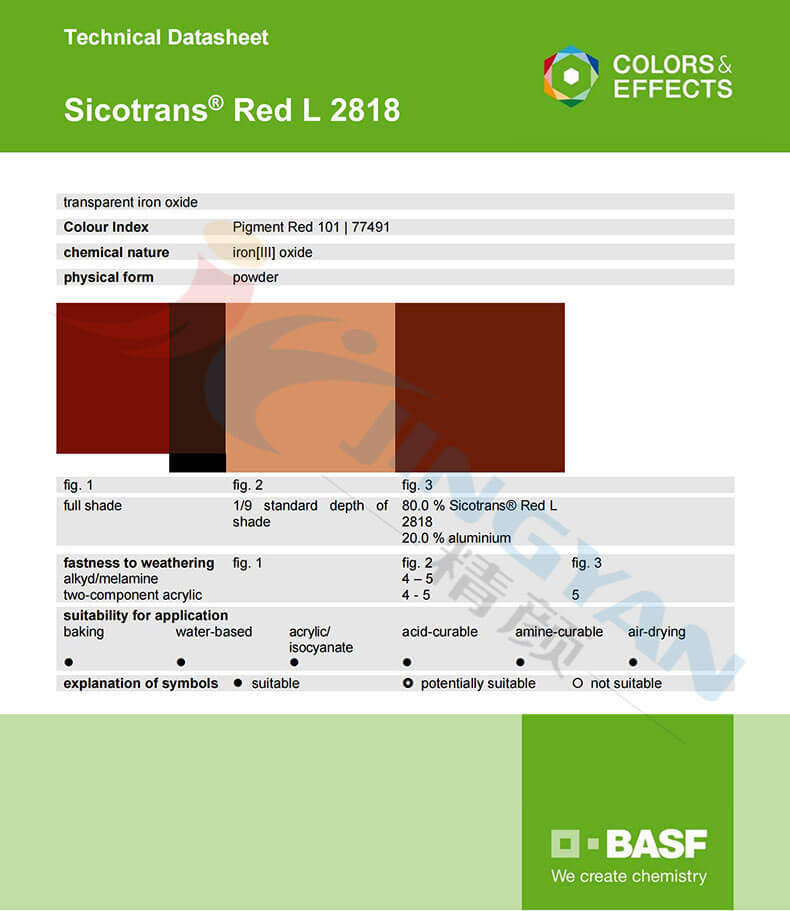 - 別 名:巴斯夫L2818高透明氧化鐵紅
